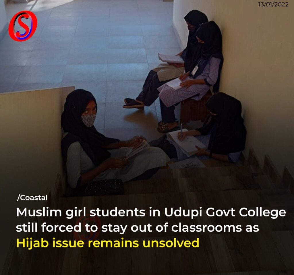 கர்நாடகாவின் உடுப்பி மாவட்டத்தின் PU அரசு மகளிர் கல்லூரியில் ஹிஜாப் அணியும் காரணத்தால் முஸ்லிம் மாணவிகள் கடந்த மூன்று வாரங்களாக வகுப்பறைக்குள் அனுமதிக்கப் படாமலும் வருகை பதிவு மறுக்கப்பட்டும் இருக்கிறது.