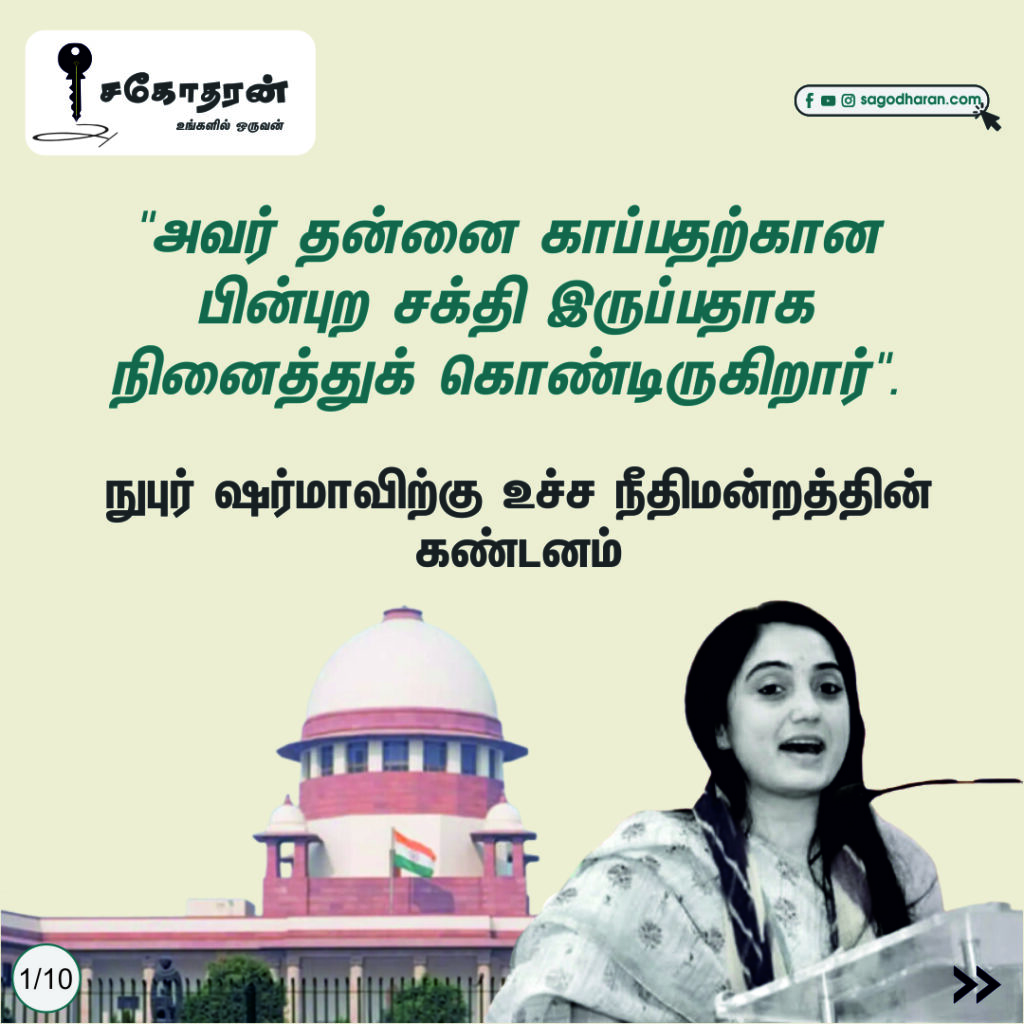Home»குறும்பதிவுகள்»நுபுர் ஷர்மாவின் வழக்கில் உச்ச நீதிமன்றம் கூறியது என்ன?